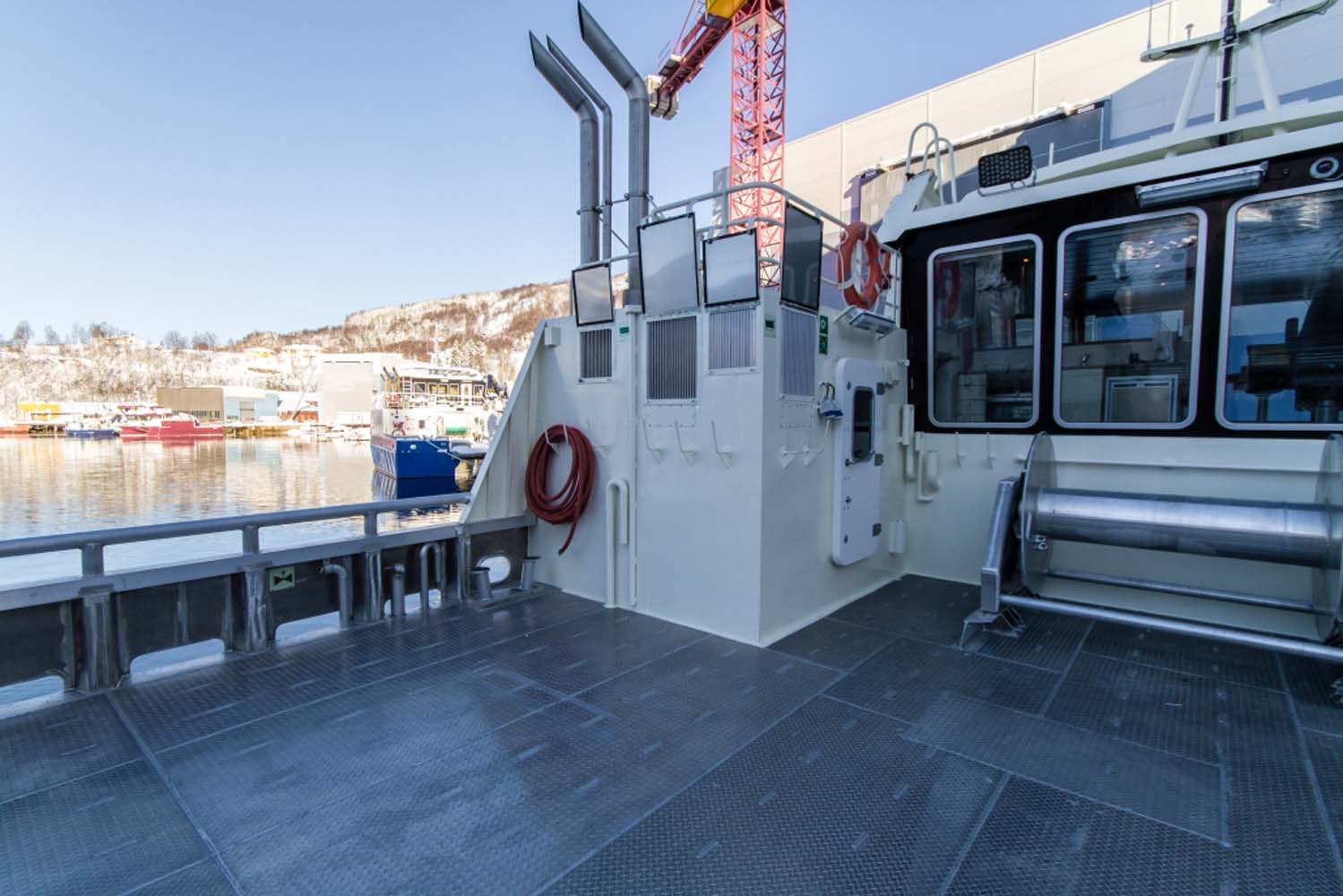 | Nokker og vinsjer | 2 stk. rekkemontert 3 tonns nokk. I tillegg monteres 1 stk. 5 tonns nokk. 1 stk. 15 tonns vonsj. |