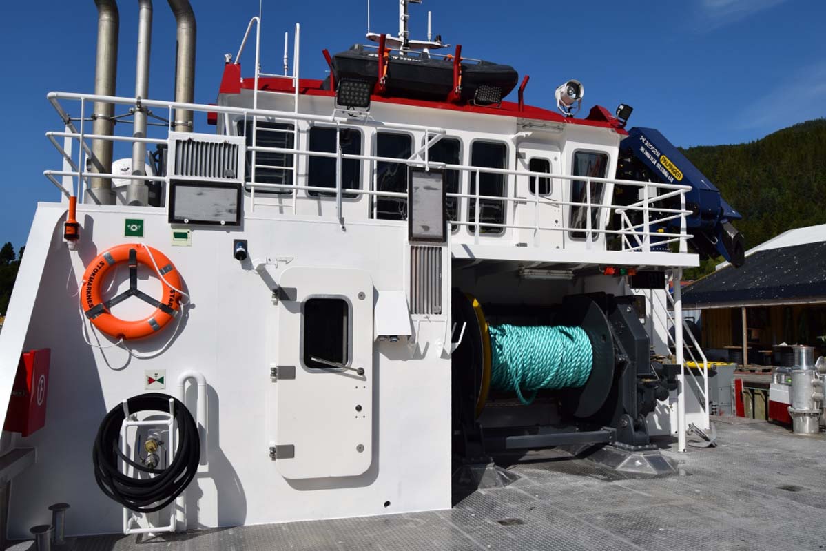 | Nokker og vinsjer: | 2 stk. 3 tonns rekkemonterte nokker, samt 1 stk. 5 tonns nokk. Videre monteres 1 stk. 5 tonns nokk. Fotpedaler og nødstopp monteres for hver nokk. |
